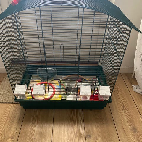 Hej då vi inte behöver buren längre kollar vi om där är någon annan som kan ha nytta utav den. Vision fågelbur i beige plast och metallgaller. Burens underdel är i plast med genomskinliga sidor och flera utfällbara luckor framtill. Ovandelen består av metallgaller med öppningar upptill och på sidorna. I buren finns sittpinnar, matskålar i metall, leksaker och sitt-ring.