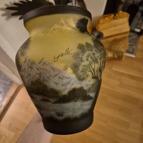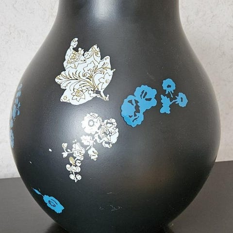 Stor dekorvas/golvvas från Kosta Boda, design av Ulrica Hydman-Vallien. Svart/vit dekor med ansikten och djurmotiv. Signerad (se närbild) och märkt Kosta Boda.