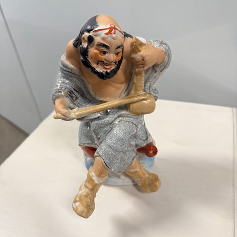 Ny-Form trollfigur med dragspel. Handgjord norsk souvenir med naturtrogen trollgestalt, röd jacka och konstgjort hår. Figuren håller ett dragspel i händerna. Märkt "Söderköping 2004" undertill och har originaletikett från Ny-Form Souvenir Norway. Passar som prydnadsfigur eller samlarföremål.