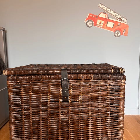 Fin och dekorativ spånkista med flätad design. Perfekt som förvaring, leksakskista, hallkista eller som inredningsdetalj.