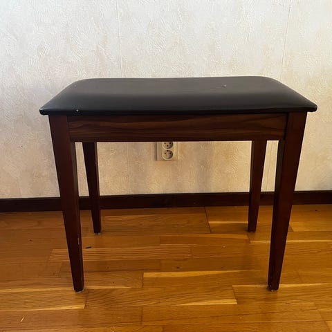 Pianopall med justerbar höjd och kryssformat stativ. Sits i svart konstläder med rektangulär form. Stabil metallkonstruktion med gummifötter för bättre grepp mot golvet. Lämplig som sittpall till piano, keyboard eller annan musikutrustning.