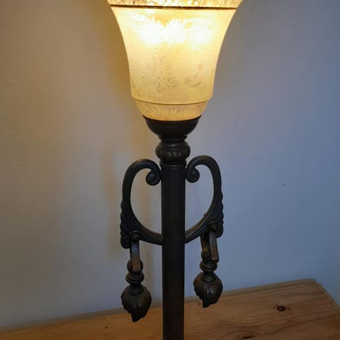 Nyckelord: lampa, bordslampa, Cottex, design, vintage, glas, metall, grekiskt mönster, inredning, belysning, dekor