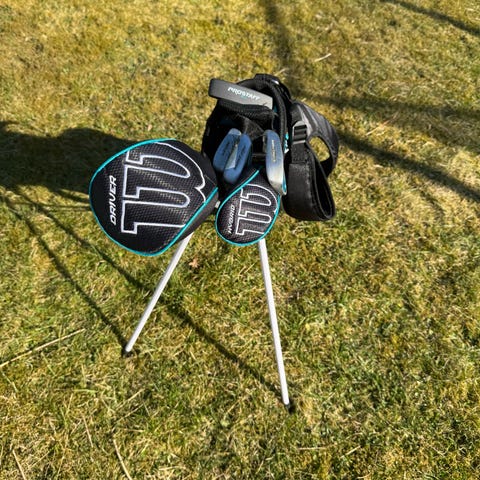 Wilson Prostaff golfklubbor set. Setet innehåller flera klubbor, bland annat driver och järnklubbor ur Prostaff-serien. Skaft i metall med svarta grepp och klubbhuvuden i huvudsak silverfärg med röda och svarta detaljer. Passar för golfspelare som söker ett komplett grundset med både träklubba och järnklubbor för spel på bana eller träningsområde.