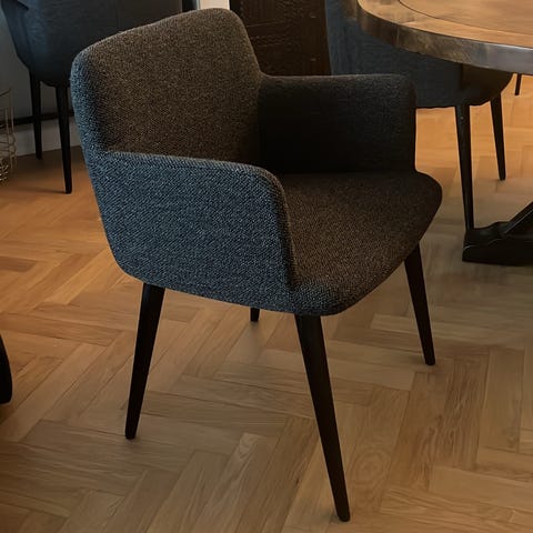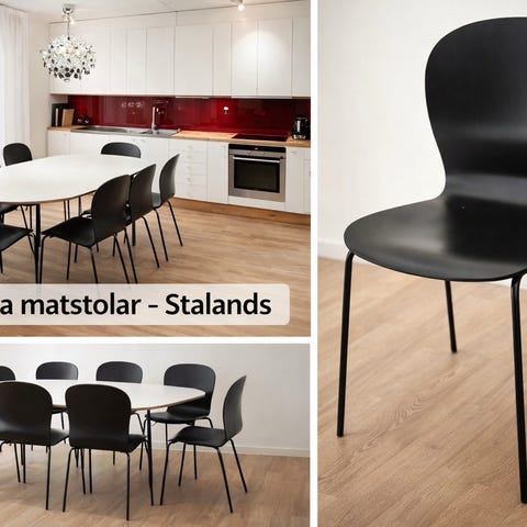 6 st matstolar i gott bra skick. Något armstöd lite nött, se bild.