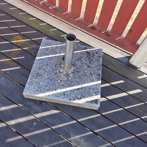Parasollfot 25 kg och halvt parasoll för balkong bortskänkes. Köpta på Jysk april 2024. Finns i Västra hamnen och hämtas senast söndag 22/2.
