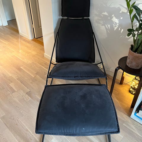 Fåtölj med tillhörande fotpall i läder "Aurula Bisque" från DIS Inredningar
