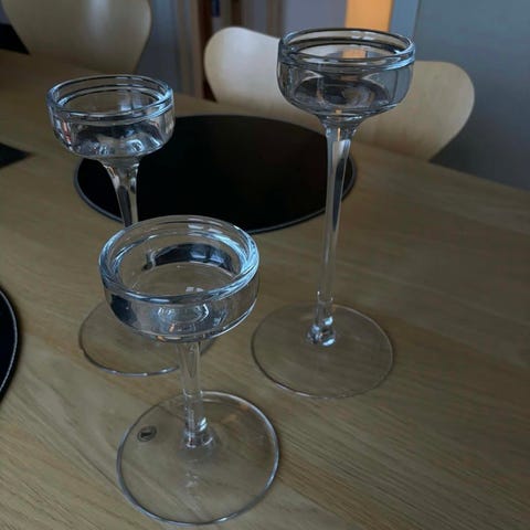 Tre stycken fina ljusstakar i glas, tre olika nivåer för en fin gruppering. Säljes pga flytt, knappt använda. Finns att hämta vid Slussen.