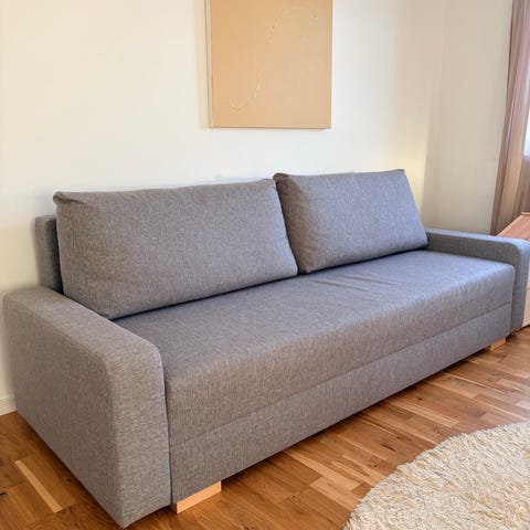 2 bäddar, i soffan samt fristående säng att dra fram under.