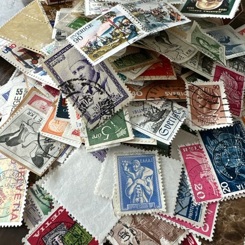 Säljer blandade valörer av postfriska frimärken till ett nominellt värde av 500 kronor, säljes för 25% av nominella värdet - 125 kronor plus porto 15 kronor.