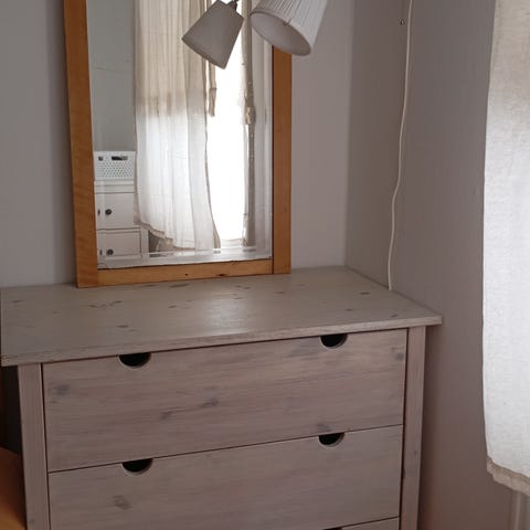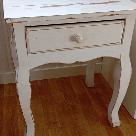 Sängbord trä vitt med låda och hylla - vackert bord i toppskick