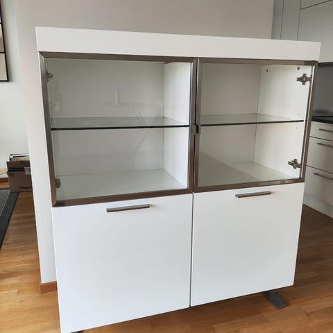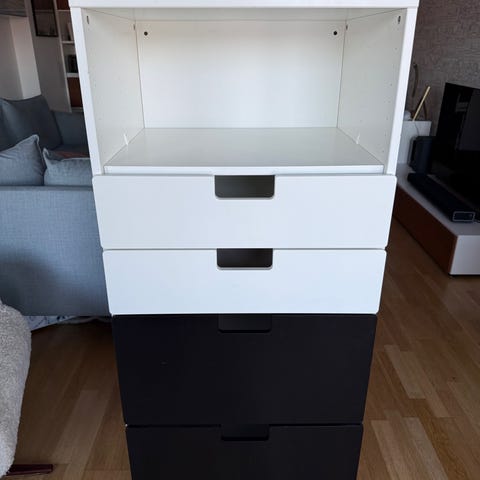 2 st IKEA beståhyllor med luckor Laxviken (1 vit, 1 svart). Hyllorna är i gott skick, med några små märken (bild 2). På baksidan av ena hyllan är ett hål upptaget (se bild 3) men är inget som syns. Nypris 3650kr. Hämtas i Västra Frölunda.