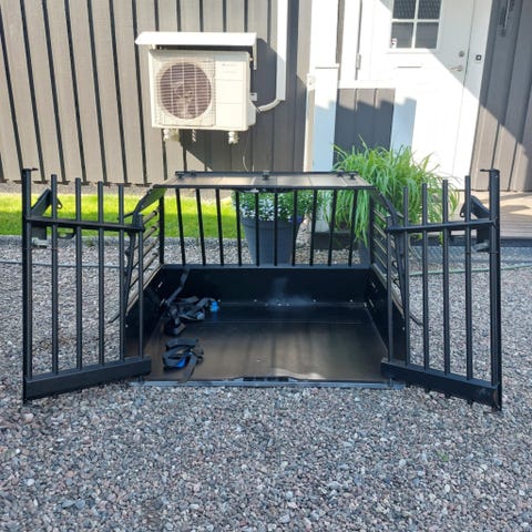 Konstruktionen är avsedd för transport av hundar i bil eller annat fordon och ger ett avskilt och ventilerat utrymme för två hundar eller för att kunna separera utrustning och djur.