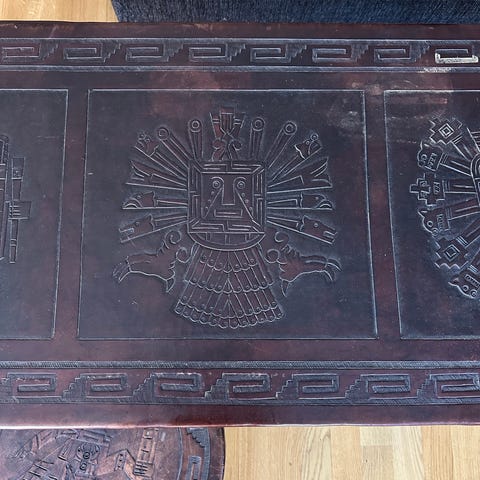 living room table, nicely used, minor markings.
