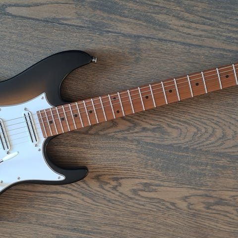 Mycket fin elgitarri toppskick. HSS pickupkonfiguration, rostad lönnhals och mycket fin byggkvalitet. Se fler bilder och läs mer om gitarren och försäljningsvillkoren på vår hemsida. Kan köpas både online och i butiken i Bromma, med inbyten, avbetalning, öppet köp och fri frakt.