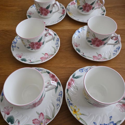 4 st kaffekoppar med fat och 3 st tekoppar med fat från Villeroy & Boch serie Manoir. Obetydligt använda. Nypris ca 2000 kr.