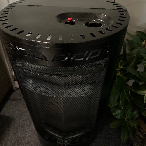 Portabelt gasolkök med en enkel brännare i vit färg. Köket har lock, galler över brännaren och ansluts via medföljande gasolslang med koppling. Lämpligt för enklare matlagning, exempelvis camping, fritidshus eller som extra spisplatta vid behov.