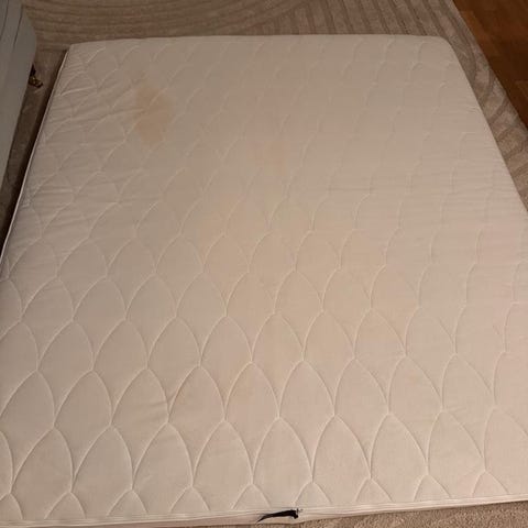 Det finns en fläck på resårbotten, men den påverkar inte funktionen.