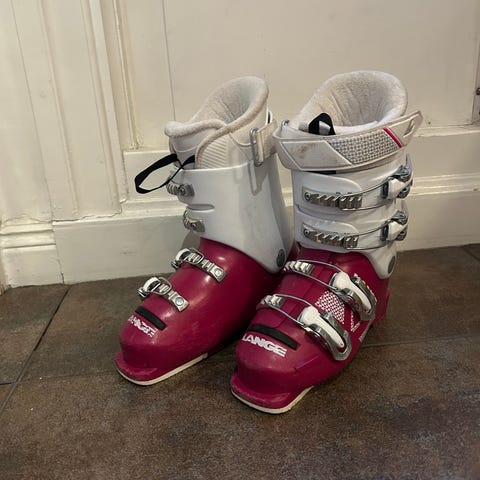 Lange pjäxor för barn i rosa och vitt. Storlek enligt märkning 17/18,5. Modellen har fyra justerbara spännen i metall för stabil passform och bra stöd runt fot och underben. Sulan är anpassad för alpina bindningar. Passar för utförsåkning för yngre barn som behöver en stabil och lättanvänd pjäxa.