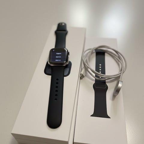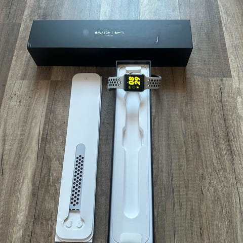 Apple Watch smartklocka för unisex med svart armband. Klockan levereras i originalförpackning med laddkabel och utbytbara armbandsdelar i svart. Passar både vardagsbruk och träning, med funktioner typiska för Apple Watch som aktivitetsmätning, notifieringar och tidsvisning. Designad för att bäras av både män och kvinnor.