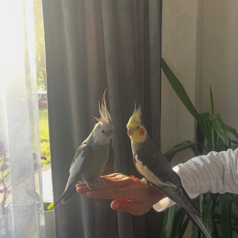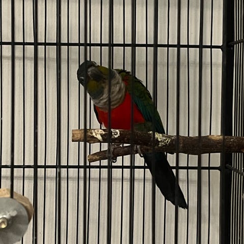 Hjälper en äldre familjemedlem sälja denna Amazon tjej, trevlig fågel som glatt sjunger och pratar på för fullt. Tam och kel villig.