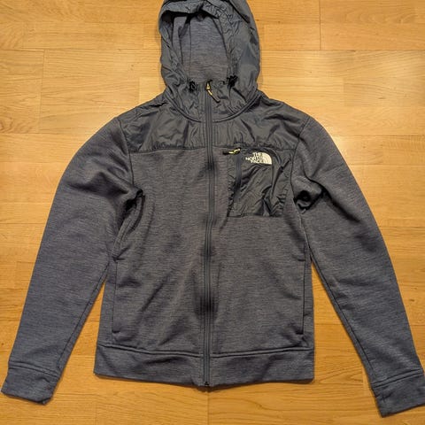 Modellen har en stor huva, hel dragkedja framtill och flera fickor med dragkedja.