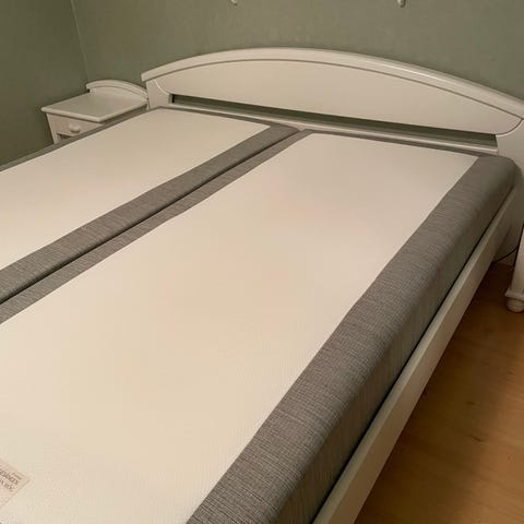 Sängstomme i ekfaner för 2 st 90x200 cm rammadrasser. Bra skick, endast några få skrapmärken.