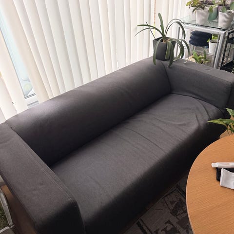 Säljer vår stilrena Landskrona 2-sits soffa i färgen Gunnared mörkgrå med snygga träben. Soffan är 3 år gammal men i mycket gott skick – den har inga fläckar, märken eller nedsuttna kuddar.