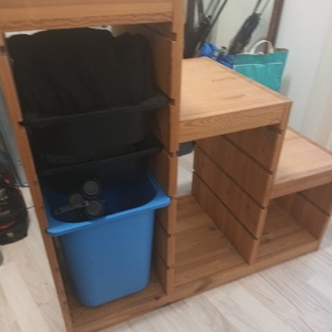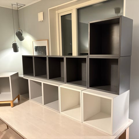 Tre stycken ikea trofast stommar i FURU, målade i svart matt färg från Jotun. Säljes då sonen fått skrivbord.