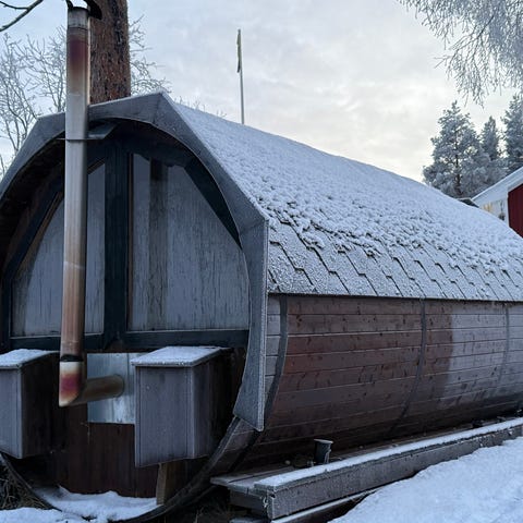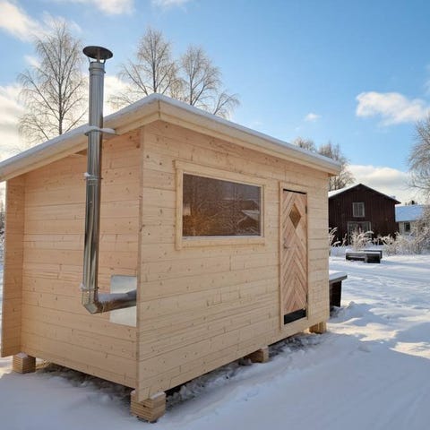 Vedeldat Harvia M3 aggregat med isolerad skorsten men går givetvis att få med elaggregat.