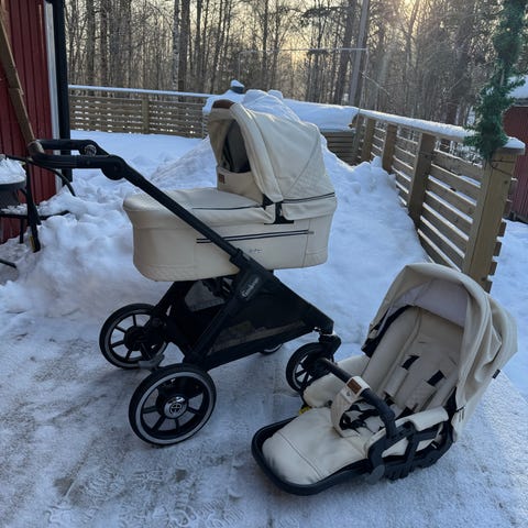 I helhet en väldigt fin vagn, det enda som finns att påpeka är i suffletten finns en del man rullar ut när den ska sitta på sittdelen, i den delen har skinnet spruckit(se sista bilden) men det syns aldrig när den är på liggdelen, och heller inget man tänker på eller som påverkar funktionen när den sitter på sittdelen.