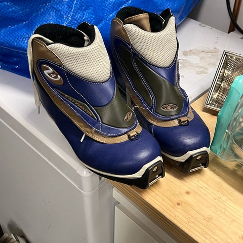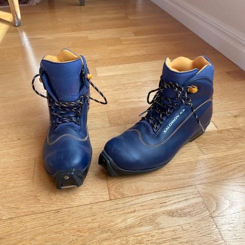 Salomon längdpjäxor med SNS Profil-bindningssystem. Storlek 40, dammodell. Yttermaterial i syntet med grå och gula detaljer. Snörning framtill och vadrem för extra stöd. Passar till längdskidor med SNS Profil-bindning.