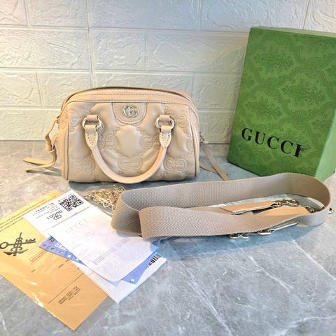 Gucci shopper väska för kvinna i svart tyg med ton-i-ton GG-mönster. Väskan har dubbla axelremmar med kedjedetaljer och läderpartier upptill samt längs kanter. Metallbricka med Gucci-logotyp framtill. Passar som vardags- eller arbetsväska med plats för nödvändigheter och mindre tillbehör. Material enligt uppgift: tyg med detaljer i läderliknande material.
