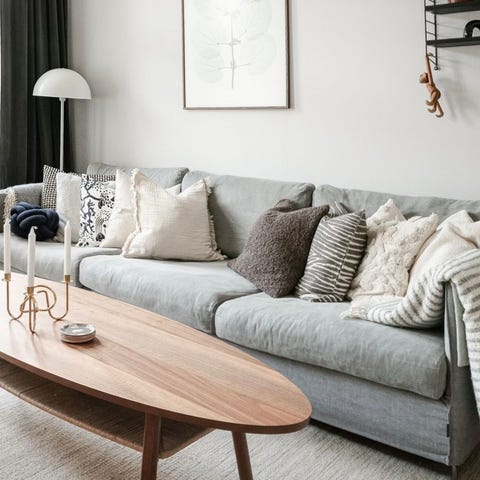 Det finns ett litet hål på soffans bakre panel bakom kuddarna, vilket gör att det inte syns.