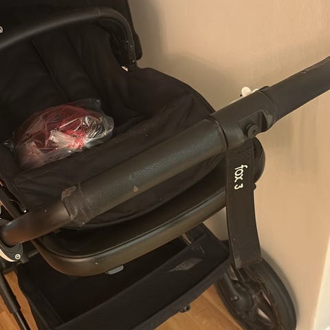 Det enda att anmärka på är ytterst få, små repor på chassit samt längst ner på ramen (se bilder). Inget som påverkar funktion. Vagnen är inte solblekt och har alltid förvarats inomhus.