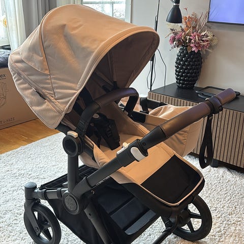 En toppenbra vagn som växer med barnet. Förlängningsbar sufflett och justerbart fotstöd. Passar från nyfödd upp till cirka 4 år.