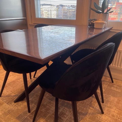 Säljer en stilren och exklusiv matgrupp i matchande valnöt pga flytt.