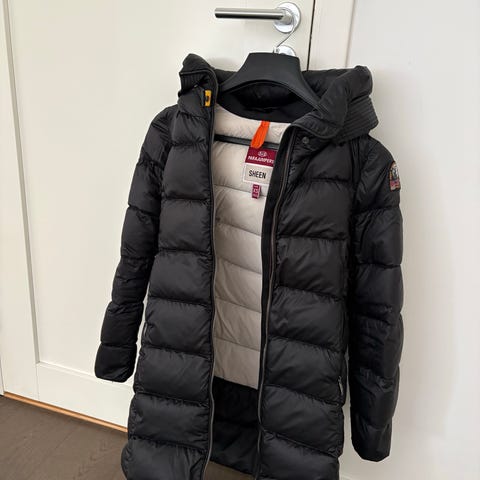 Parajumpers jacka för dam i storlek XS. Jackan är svart och har längre modell med huva. Materialet är bomull enligt angiven information. Passar som ytterplagg i vardagen och för utomhusbruk under kallare väder.