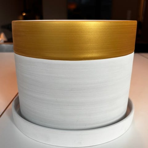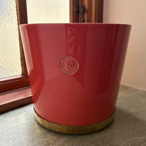 Svenskt Tenn Tolvekarna kruka grön med mässingsfat