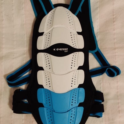 Ryggskydd i svart och gult med justerbara axelremmar och midjebälte med kardborre.