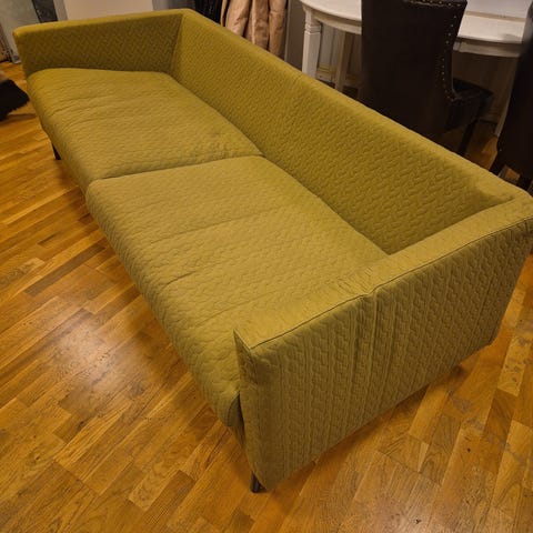 Skön sittkomfort. Färgen är brun åt det gråa hållet. Svår att fånga på bild där den mer ser blå/grå ut.