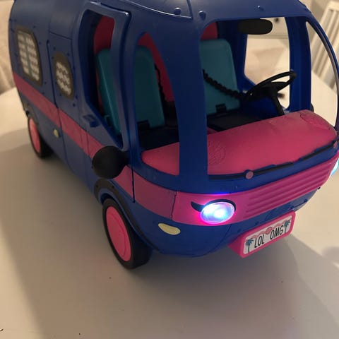 L.O.L. Surprise leksaksbil i form av en cabriolet. Bilen är huvudsakligen rosa och guld med dekorativa ränder och detaljer. Den har två säten framtill och öppet flak/bagageutrymme bak som kan omvandlas till en pool.