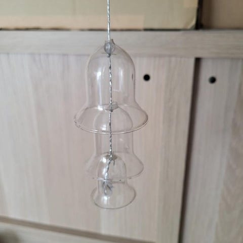 Vackert vindspel i form av en lotus, prismorna reflekterar många färger i solskenet!