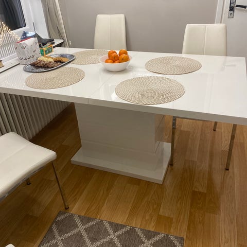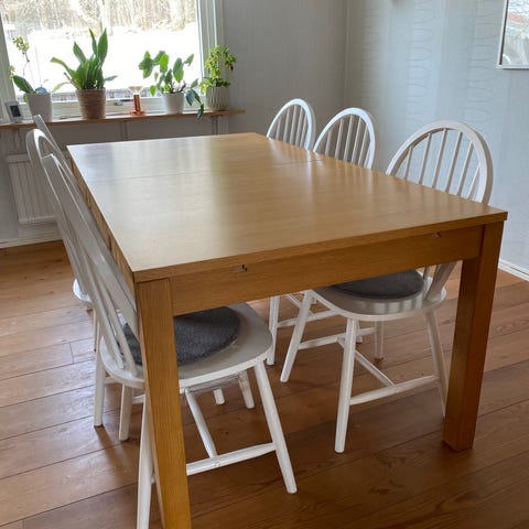 Säljer utdragmatbord+6 stolar+ skydd för stolarna+ lampan+ två pallar som finns på bilden. För 1800kr