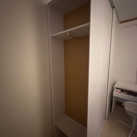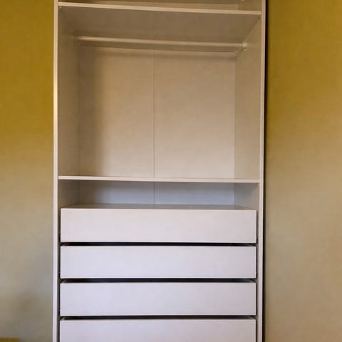 Pax garderob i ek med två hyllplan. Har stått i ett gästrum.