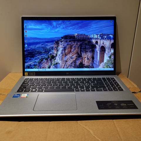 Acer laptop i silverfärg. Bärbar dator med inbyggt tangentbord och pekplatta. Skärm i standardstorlek för laptop. Hölje och undersida i metall- eller metallliknande material. Lämplig för vardagligt bruk som webbsurf, kontorsarbete och enklare studier beroende på intern hårdvara och installerat operativsystem. Exakta specifikationer som modellnamn, skärmstorlek, processor, minne och lagring framgår inte av bilderna och behöver kontrolleras på enhetens märkning eller i systeminformationen.
