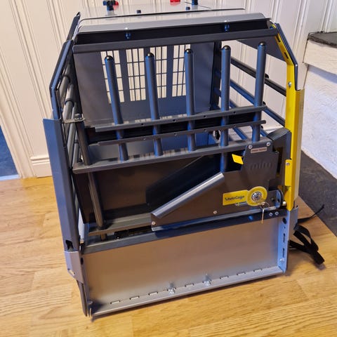 En mycket praktisk dubbelbur för hundar.