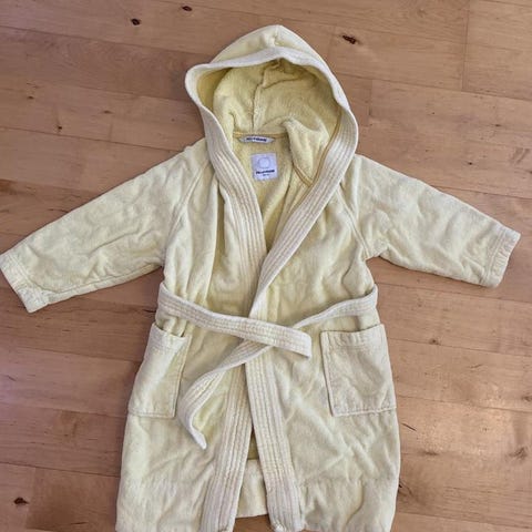 Knappar, knytband runt midjan, två fickor fram, luva med öron. Supersöt!