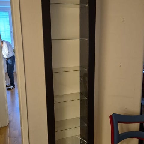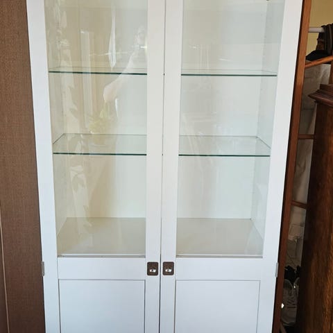Det är en buffé och bur med vit glasfront, liknande Angelina-skåpet i design.