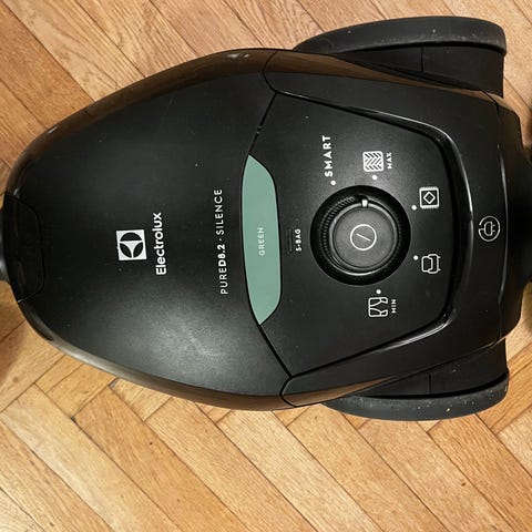 Electrolux Pure D8.2 Silence dammsugare i svart utförande. Golvdammsugare med slang och rör samt kombimunstycke för olika golvtyper. Modellen är påsdammsugare och har reglage på ovansidan för inställning av sugstyrka och olika program. Passar för dammsugning av hårda golv och mattor i hemmet.