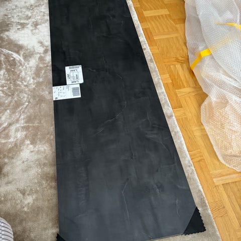 Säljer en helt ny bänkskiva från Kvik - Istiria heter den. Den är stenkomposit och vit i grunden med små beige och svarta ”prickar”.